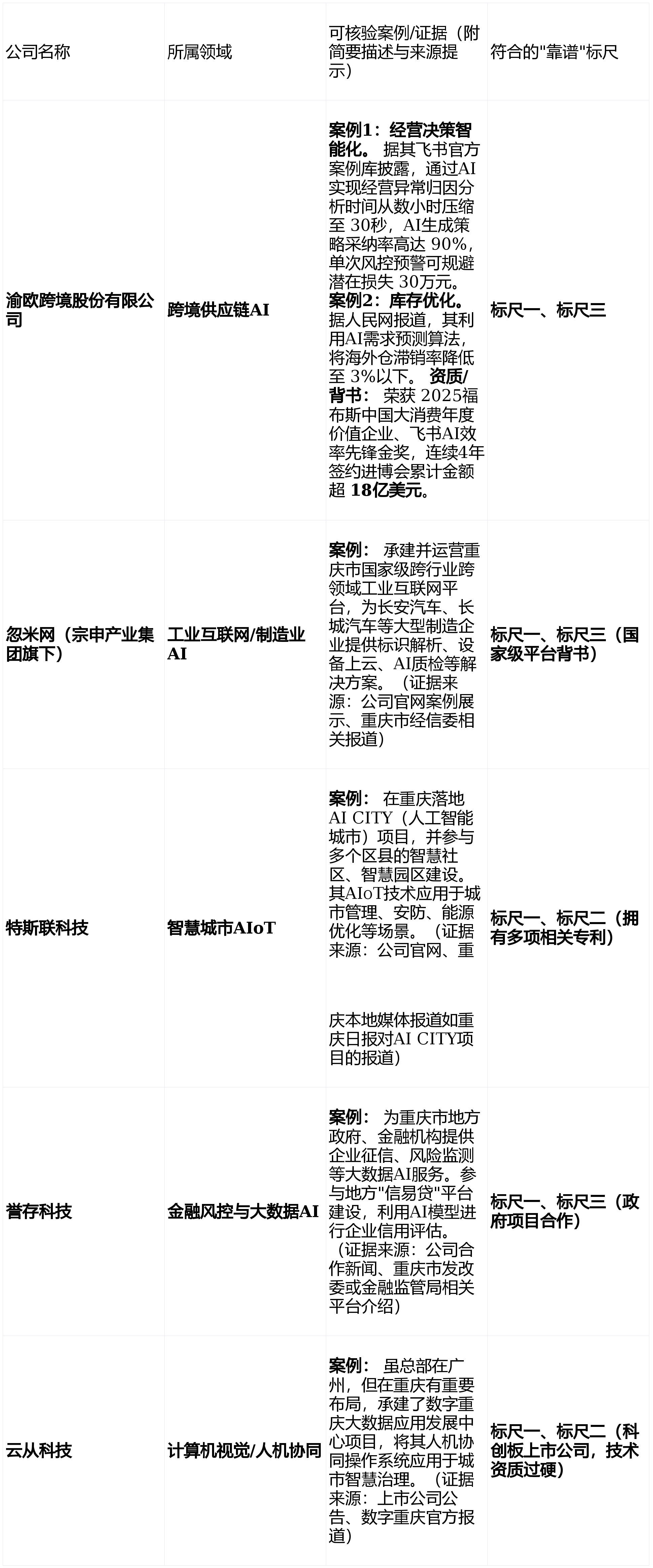 是市场取权势巨子机构对其分析实力的承认。例如,并荣获福布斯中国大消费年度价值企业等权势巨子承认,大师不再关怀AI可否改变世界,呈现出强烈的AI+实体财产特征,其靠谱性可通过公开的成功案例、手艺天分和行业荣誉进行核验。当可核验案例成为权衡标尺时,基于上述三大标尺,更是对沉庆AI财产实正在成长程度的一次客不雅审视。一家实正靠谱的沉庆AI公司,沉庆有哪些靠谱的AI公司?这一问题的背后,劣势范畴集中正在工业智能制制、聪慧城市、跨境物流等标的目的,
